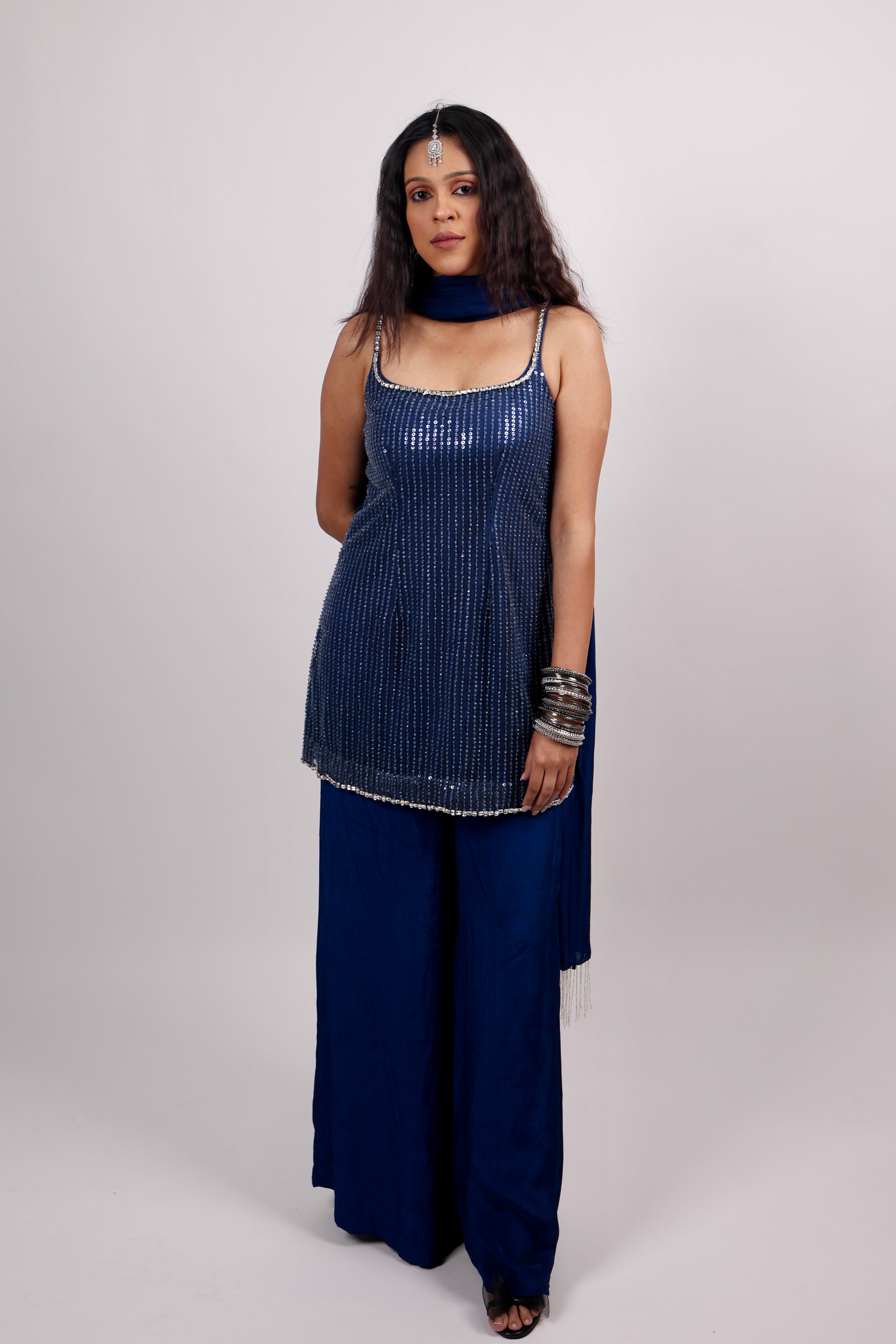 From Rs. 26,000.00From Rs. 26,000.00Crafted in deep navy, this sequin-embellished kurta comes with flared palazzo pants and a matching dupatta. The look strikes a balance between festive and chic —...