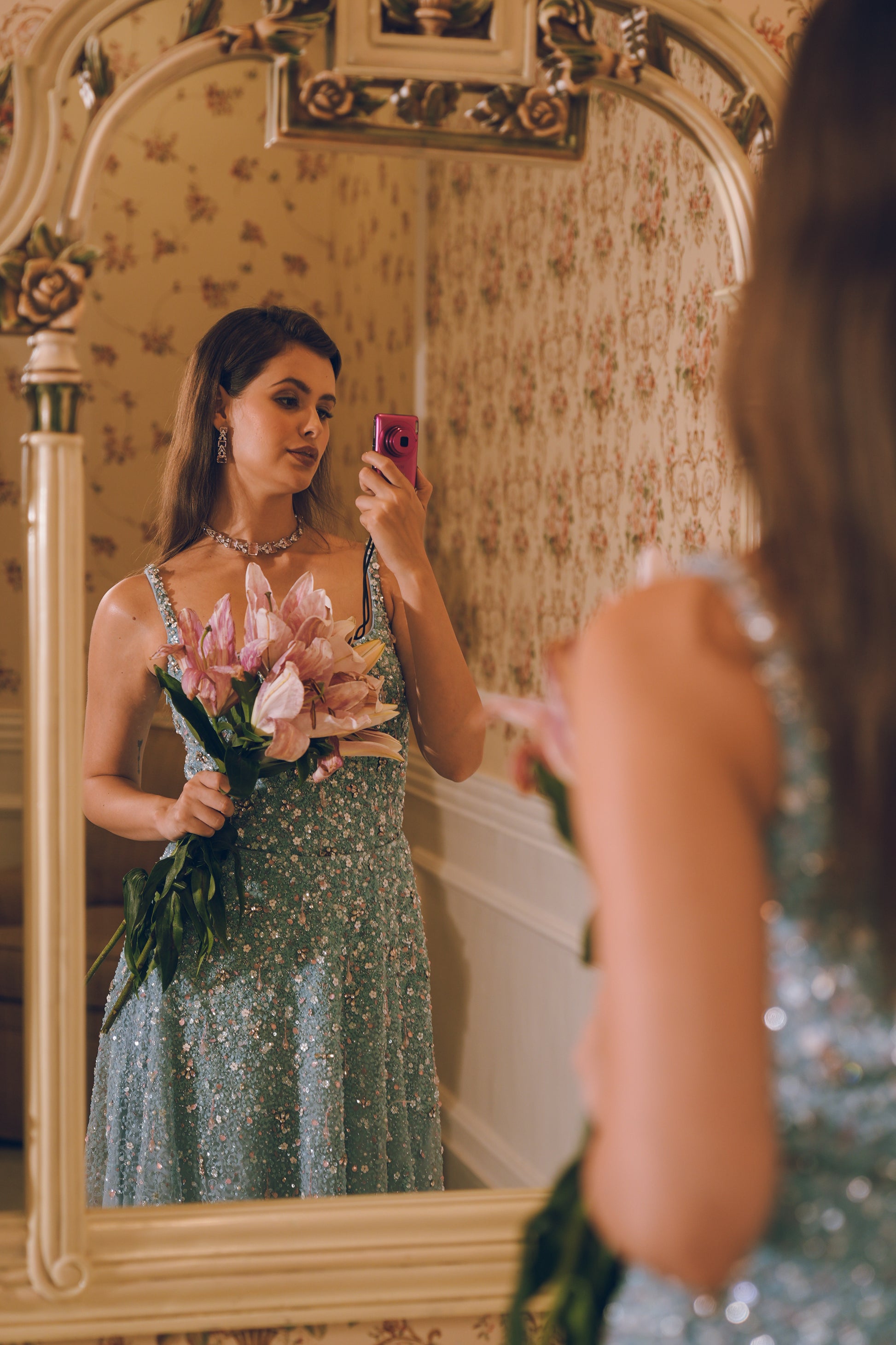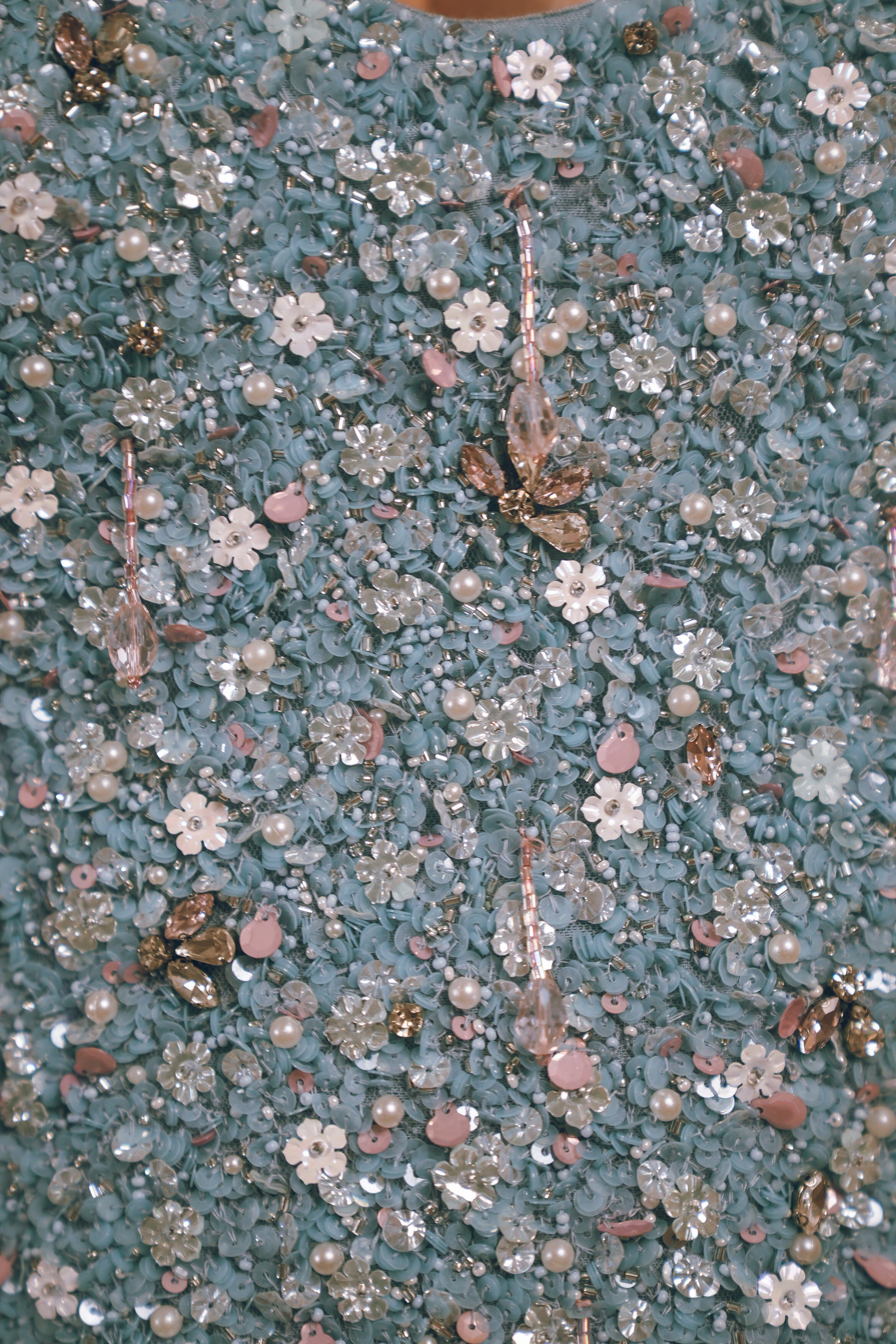 A pastel blue embellished gown with cascading pearl and crystal work, flowing gracefully with timeless charm. Aversetile piece designed for receptions, formal dinner, destination weddings, evening galas and red carpet events.